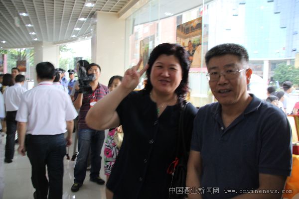 广东省酒类检测中心副主任、酒类行业协会常务副会长赵红向记者挥手庆祝酒博会成功