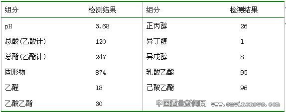 白酒蒸馏过程中,馏分的酒精度逐渐下降,酒精度在20度以下的馏分称酒尾。酒尾中含有较多的高沸点香味物质,酸、酯、杂醇油、高级脂肪酸等含量高(见表3)。但因其含量不协调及部分高沸点杂质的存在,使酒尾带有强烈的酸味和强刺激性臭味。一般情况下为了减少浪费,多数厂家将其直接倒入底锅内串蒸,少数厂家长期存放后做调味酒,但使用效果不理想。