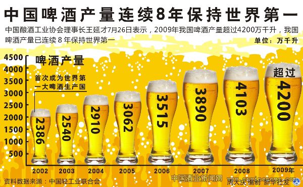 中国啤酒产量连续8年保持世界第一