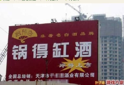 郭德纲名字被注册成白酒商标已是旧闻,但由于近日郭德纲徒弟打人事件的爆发,又有网友将这个名为“锅得缸”的白酒广告张贴上网。该广告用白色醒目字体在红底上写着“锅得缸”三个大字,并标明“非著名品牌”的字样。对此,郭德纲经纪人曾经表示,“我们会加快注册‘郭德纲’商标,以防后患。”