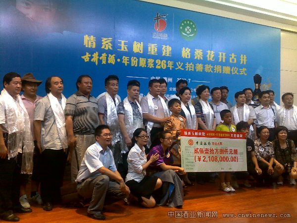 这个“三江源汇聚古井”的仪式,是古井贡酒26年原浆义拍善款捐赠活动中的一项。在“玉树震后100天”纪念日之后的第一个周末,古井集团将对玉树灾区的牵挂、对震中逝去同胞的哀思,化为直接支援灾后重建的行动。在善款捐赠仪式上,古井集团党委副书记、纪委书记王锋,将古井贡酒26年原浆开坛时义拍所得的210.8万元善款,以及古井员工捐赠的23.3万元,全部转交给青海格桑花教育救助理事长洪波,用来给地震灾区的教室里添置课桌椅,完善发电、卫生等配套设施,给孤儿院添置帐篷。这笔捐款是古井集团在玉树4.14地震发生后捐出的第六笔款项,也是格桑花教育救助会自成立以来收到的最大一笔助学捐款。