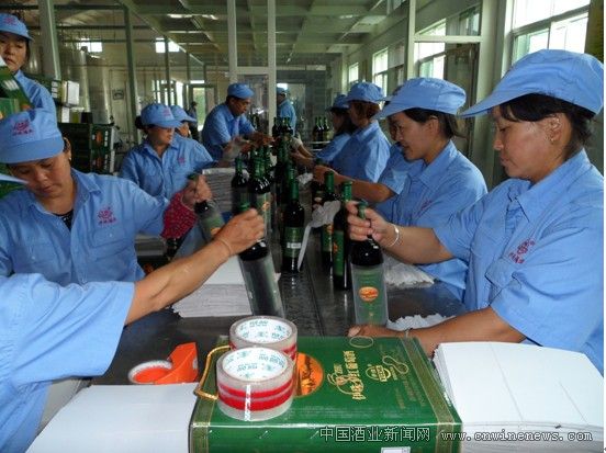 把质量关,生产的伊珠系列葡萄酒以其质量稳定、口感醇厚、浓郁优雅、价格适中,备受消费者青睐,产品远销全国20余个省、市、自治区。图为包装车间员工正在包装伊珠干红葡萄酒。