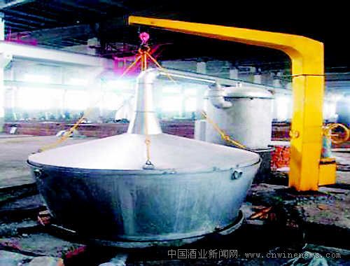回锅串蒸是从蒸馏环节来提高基酒质量的所有方法中,一直延用至今的一种工艺。它是利用各种香味物质的醇溶性特征和蒸汽的拖带效应,将香味物质从糟醅中提取出来。20世纪90年代,公司停止高粱固体生产,准备上马酒精串香工艺时,进行了该项工艺改造(因市场与技术进步等原因,后酒精串香工艺没有生产)。当时考虑酒精稀释后乙醇含量也不太低,直接加入热的底锅时挥发损失会较大,为此对活动甑的底锅进行了相应改进,即在冷凝器接酒口另加一个可以用不锈钢阀开闭的小不锈钢槽,使之与底锅相连通,每次出甑后,先将活动甑安装好,再从小不锈钢槽添加串香液,这样,不仅可以大幅度地增加黄水、酒尾、串香液的乙醇回收率,而且经过优质糟醅和多轮次的串蒸后,可以提高原酒等级,提高酒的质量,还可以较方便地接酒尾。