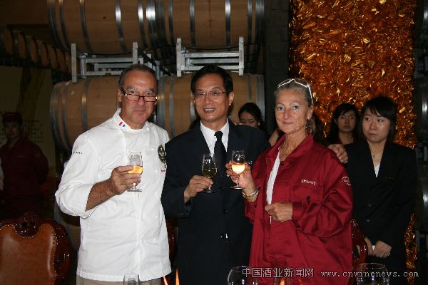 王朝公司董事长白智生向法国总统厨师 Bernard VAUSSIN夫妇敬酒