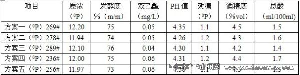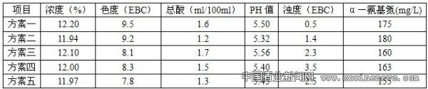 试验都采用同一糖化工艺,每一方案做两罐,保证试验效果的一致性。