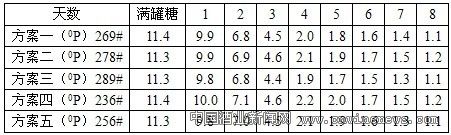 为了证实试验的全面性、可靠性和有效性,本次试验共设置五种方案。由糖化车间四工段和发酵车间三工段来执行本次试验,预产热麦汁:120P55吨,糖浆在煮沸锅里加,技术部安排专人全程跟踪生产。