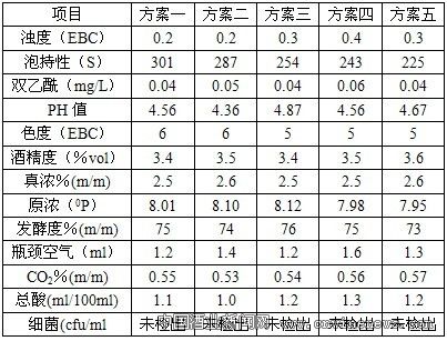 理化指标主要存在以下情况:发酵降糖情况与正常没有变化;所有方案中的浓度、发酵度、总酸、双乙酰、PH值与正常无明显差异。