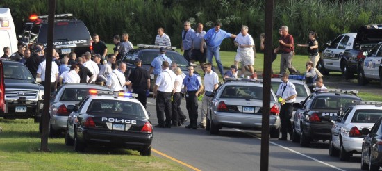 8月3日,在美国康涅狄格州曼彻斯特,人们撤离枪击现场。