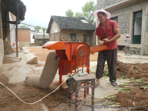 减少农民损失,茅台集团将今年高粱收购价格提高到6.6元/公斤。2009年茅台酒用有机收购价为6.2元/公斤。9月11日,贵州省仁怀市鲁班镇李绪文夫妇正在忙着为高粱脱粒。 【特约记者/周山荣 摄】