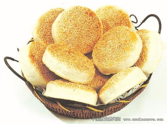 曹州烧饼是鲁西南名吃之一,其状圆如月,红中透黄,外焦里嫩,香酥可口,其制作方法:选用小麦精粉,经和、发酵、盘、揉等道工序,按扁包上用香油、食盐、花椒、茴香面等多种佐料而成的油瓤,再经切花盘沿,涂上一层糖稀,表面沾上芝麻仁,贴入炉内烘烤而成。