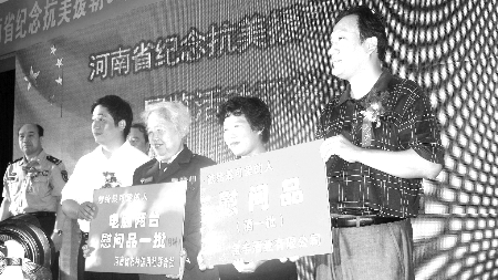 9月18日,纪念抗美援朝60周年系列活动开幕式暨纪念实物和名人名家书画展览在河南省国防教育基地举行。抗美援朝老战士代表、省军区直属分队官兵、河南工业大学师生以及社会各界群众共300多人参观了展览,并齐声高唱那首振奋人心的《中国人民志愿军战歌》。在仪式上,河南宝丰酒业有限公司特意为老将军、老战士献上慰问礼品,以自己独有的方式表达对老将军、老战士最崇高的敬意。