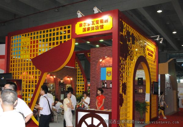 第21届(广州)国际特许连锁加盟展会现场的摩尔多瓦葡萄酒体验馆展示区