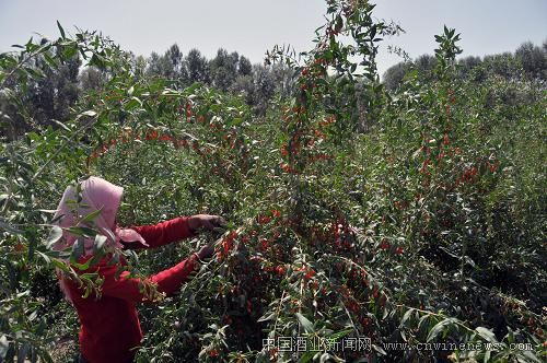 位于柴达木盆地的青海省海西蒙古族藏族自治州都兰县农业部门,近年来在戈壁滩上大力发展枸杞产业,逐步建成了规模达12万亩的枸杞园。今年这个地区有7万亩枸杞进入盛果期,预计平均亩产超过300斤,将为当地增收7亿元。枸杞产业已经成为当地的支柱产业,根据当地政府部门的相关规划,未来几年,都兰县的枸杞种植面积将达到50万亩。图为8月31日,一位农民在采摘枸杞。