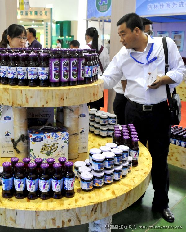 图为观众在东北亚博览会上参观产自长白山的蓝莓制品。 9月6日,为期五天的第六届中国吉林·东北亚投资贸易博览会在长春落下帷幕。此次博览会共引进域外投资1589.3亿元人民币,其中国外投资23.74亿美元。据统计,本届博览会期间,对外贸易成交额达5.85亿美元,国内贸易成交额16.1亿元人民币。