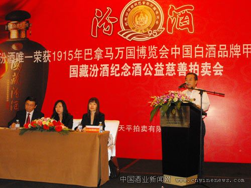 为了纪念汾酒唯一荣获1915年巴拿马万国博览会中国白酒品牌甲等大奖章95周年,汾酒集团特制了95瓶“国藏汾酒纪念酒”,并将其中20瓶委托北京天平拍卖有限公司在9月5日进行了公益慈善拍卖。拍卖所得全部纳入汾酒集团公益慈善基金,用于扶危济困、捐资助学等公益慈善事业。