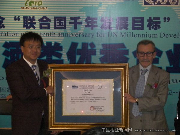 联合国经济及社会理事会(ECOSOC)授权永久I类咨商地位——国际信息发展组织(DEVNET)总干事长丹尼尔·巴瑞奥出席并发表了热情洋溢的讲话,他在讲话中阐述了联合国“千年发展计划”的宗旨和目标,宣布获得“千年金奖、优秀奖”企业名单。“在联合国千年发展计划中,中国发挥着十分重要的作用,特别是中国的酒类企业,承载了厚重的文化传统,他们积极将传统与现代市场消费需求相结合,极大推动了地区经济发展,是联合国千年发展计划的积极践行者。”巴瑞奥如是说。
