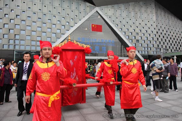 古越龙山世博永久珍藏酒被花轿抬着入驻中国馆并永久珍藏