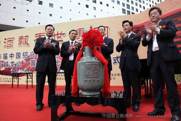 嘉宾们共同为古越龙山世博永久珍藏酒揭幕