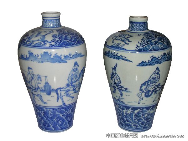 桂林三花酒厂就抓住了这个好时机,努力挖掘地域文化精粹并将之与传统文化有机地结合起来,在仿古酒瓶上下了一番功夫,推出了款款精致、古意深厚的青花梅瓶造型的酒包装,让酒器收藏爱好者魂牵梦绕,苦苦寻觅,其中以“携酒访友”与“西溪问樵”两款酒瓶最让瓶友着迷。
