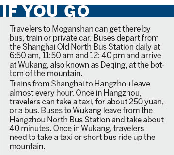 Moganshan is touted for its tranquil scenery and soothing atmosphere, especially among city slickers in need of a break from Shanghai's noise, overcrowding and often hazy air. The mountain is about 200 km away from Shanghai