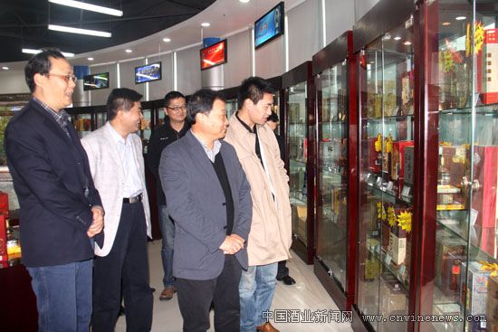 天驹投资集团营销副总裁崔健陪同汾酒集团销售公司总经理郑开源参观烟酒城。