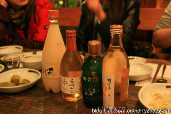 今天韩国最出名的药酒是人参酒。人参最好的是锦山产的。酿制人参酒,必须先把人参和小麦做成酒曲,然后将这些酒曲加上大米、尾参和水制成引酵物。酿制时,再将蒸饭、尾参、松叶和艾草放人一起发酵,整个制作过程需要100天的时间,而且存放越久,香味越浓。人参泡酒与它比起来,不可同日而语。除了人参,切碎的当归根和当归叶子也可入酒,此酒以活血见称。加入菊花叶子和松叶,就是松菊酒。人松果,即为松铃酒;松树的嫩芽也可人酒,人松笋,即为松笋酒;人松树的树汁,称为松液酒。还有,人松子为松子酒,人松节为松节酒,人松脂为松脂酒,人松黄为松黄酒,几乎整个松树都能够酿酒。韩国人还可以在歪斜了的老松树树干上挖槽,在树槽里酿酒,叫做“卧松酒”。这已不是酒了,简直就是纯艺术。韩国人酒艺确实别致,还可以把竹叶熬汁,用汁来酿竹叶酒,甚至可以用个大竹筒来酿酒,叫做“竹筒酒”。