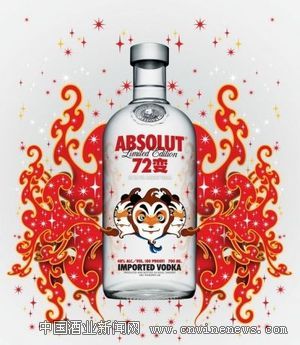 According to Jing Daily, a blog devoted to China's luxury business and culture, in August limited-edition bottles of Sweden's Absolut vodka designed by Chinese pop artist Gao Yu hit shelves with a design featuring "72?" which signifies transformations and the capabilities of the sun. It is selling on eBay in Singapore for S$170/€95.