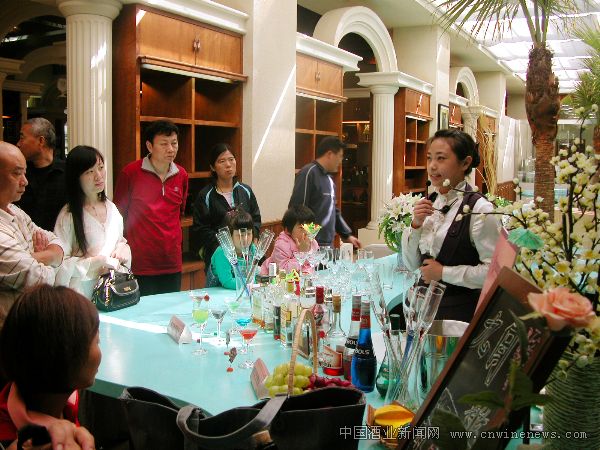 张裕酒城专业的葡萄酒顾问为游人讲授了有关鸡尾酒的一系列酒文化知识,包括鸡尾酒的起源、特性及类型等,幽默诙谐的讲授方式和精彩专业的调制手法博得了在场游客的阵阵掌声,在边讲边教授的过程中,有的游客迫不及待地使文章来源中国酒业新闻网用专业的调酒器具体验调制起了鸡尾酒,像山花烂漫、快乐的葡萄园、红酒库勒等。