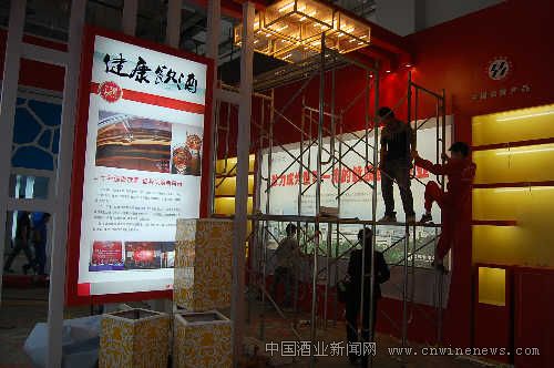 健酒龙头企业,劲牌有限公司首次在全国糖酒会上设置展位,并将“健康饮酒”的理念带到了2010年秋季糖酒会上。图为10月7日劲牌有限公司员工在布置糖酒会展位。