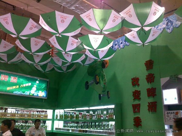 雪帝啤酒用伞布置展厅,简单用心