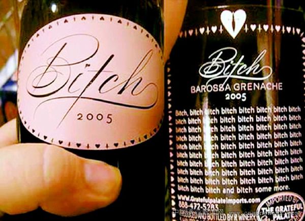 为了让自己的产品显得与众不同,一些葡萄酒生产商为酒取了各种怪异的名称。一位澳大利亚酒商将自己的产品命名为“Bitch”(泼妇),并将其在酒标上重复出现77次(如图)。
