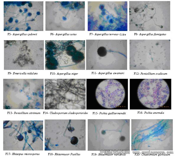综合分析免培养法和培养法检测黄酒麦曲中真菌的结果,初步认为麦曲中的主要真菌为:伞枝犁头霉、米曲霉、烟曲霉、黑曲霉、小孢根霉、微小根毛霉、季氏毕赤氏酵母、异常毕赤酵母、米根霉、酿酒酵母、热带假丝酵母文章来源华夏酒报、构巢裸孢壳及葡萄牙念珠菌。