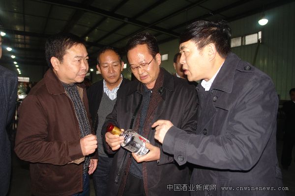 贵州省副省长蒙启良副省长(中)在青酒集团董事长文义长(左)陪同下,参观青酒集团新建包装生产线