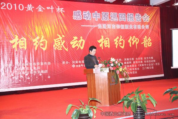 11月20日,“感动中原人物事迹报告会”在河南仰韶酒业有限公司举行。本次活动特邀2008感动中原人物、感动中国人物李隆和2007感动中原人物吴新芬做报告。本次报告会由河南省委宣传部等单位主办,河南电视台都市频道、河南仰韶酒业有限公司承办,主要目的是弘扬无私无畏的社会风气,践行社会主义荣辱观,进一步体现仰韶酒业有限公司担负社会责任、投身公益事业的决心。