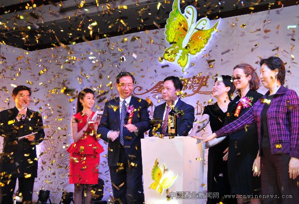 本报讯 11月20日,金蝴蝶G系列法国葡萄酒中国上市发布会在北京召开,广州龙程酒业有限公司正式推出其自主品牌“金蝴蝶”葡萄酒法国系列。中国糖业酒类集团公司总经济师、全国糖酒商品交易会办公室主任何继红,中国烹饪协会秘书长冯恩援,法国驻华大使馆商务处农业食品部主管Laure ELSAESSER、广州龙程酒业有限公司董事长温文龙,以及来自全国各地的实力派经销商、社会各界精英、主流媒体代表等近300位嘉宾出席发布会,共同品尝高品质的金蝴蝶G系列法国葡萄酒。