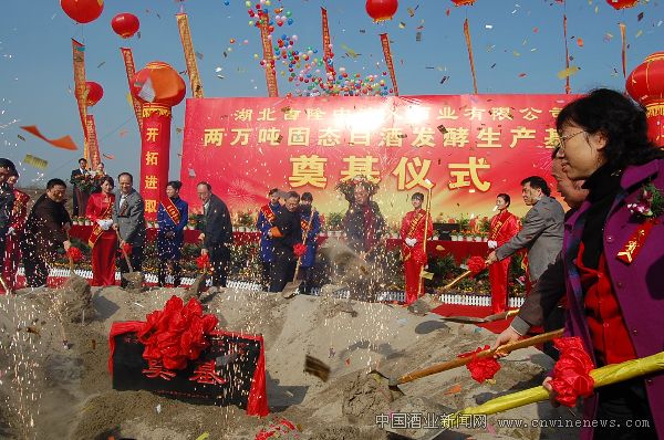 义酒业有限公司2万千升固态白酒发酵生产基地奠基仪式在湖北省襄樊市举行,这标志着古隆中演义新白酒生产基地正式开工建设。