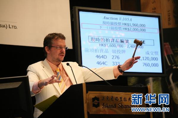 这是名酒拍卖会现场(11月6日摄)。 11月5至6日,Acker Merrall & Condit名酒拍卖行在香港举行名酒拍卖会,推出了1300批顶级珍酿,两天拍卖共创下高达9550万港元总成交额,拍品成交率达98.7%。