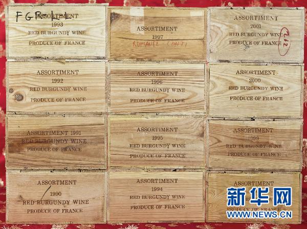 本次拍卖全场成交价最高价达231.8万港元的囊括1990至2001年全部12个年份的12瓶装箱DRC罗曼尼康帝组合(11月5日摄)。 11月5至6日,Acker Merrall & Condit名酒拍卖行在香港举行名酒拍卖会,推出了1300批顶级珍酿,两天拍卖共创下高达9550万港元总成交额,拍品成交率达98.7%。