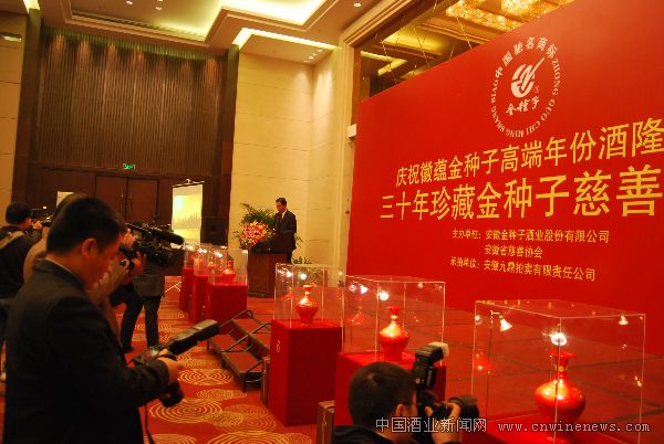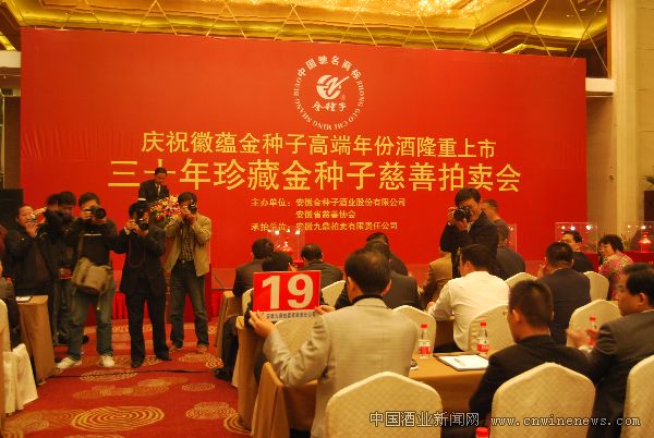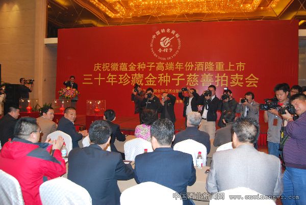 11月6日,安徽金种子集团和安徽省慈善协会联合在合肥举办了徽蕴金种子高端年份酒上市“三十年珍藏金种子慈善拍卖”的活动,编号为1、6、8、9、88、888号的6瓶三十年珍藏金种子酒拍出了160.3328万元的高价。其中,1号标的更是拍出88.8万元的安徽白酒单瓶最高价。