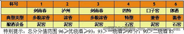 糖化发酵剂、酿酒设备、典型类型、分值设定为1分,酒样总分设定分值为3分,质量排序每杯酒样设定为3分,酒度测定每杯酒样是4分,重现分值是3分,再现分值也是3分。酒度判分是按偏离度,就是标准酒度左右3度差得分,得分多少按接近标准酒度给分。总分按给定的分值范围给分,只要在给定范围就得满分。