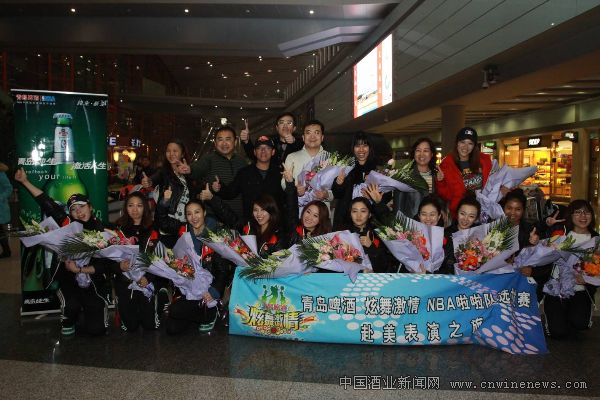 北京时间12月11日,通过青岛啤酒“炫舞激情”NBA啦啦队选拔赛脱颖而出的10位充满青春活力的女孩儿远赴美国,代表中国啦啦宝贝在NBA的赛场上展现中国年轻人的激情与活力。在为期10天的美国之旅中,姑娘们先后在NBA迈阿密热火队和克利夫兰骑士队的主场比赛中登场表演,赢得了美国观众的一致好评。12月21日晚,圆满完成任务的10位啦啦宝贝返回中国,在机场他们受到了青岛啤酒股份有限公司领导,以及亲友和粉丝们的热情欢迎。