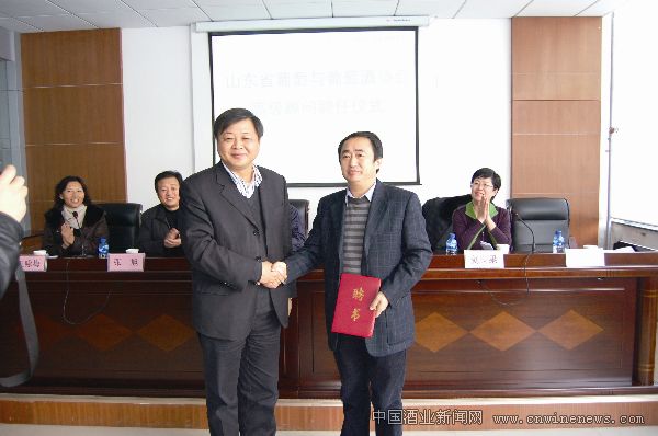 1月6日,山东省葡萄与葡萄酒协会高级顾问聘任仪式在烟台举行,山东省葡萄与葡萄酒协会常务副会长、秘书长胡文效为国家葡萄酒及白酒、露酒产品质量监督检验中心主任朱济义颁发了高级顾问证书。
