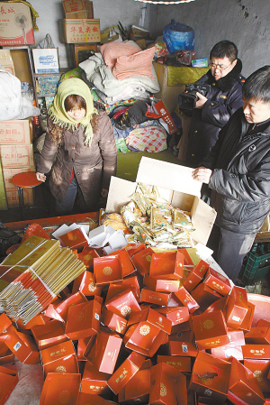 农妇用袋装“老村长”灌制假名酒 田野/摄 花2.5元买来袋装廉价白酒,转手换包装就变成了高档名酒,以高价卖出。12日,长春市工商局联合长春市公安局经侦支队对窝点进行突击检查,发现54箱包装好的假四星“榆树钱”,以及大量金六福包装。 报料:廉价白酒换瓶卖高价 10日上午,家住长春市马家村附近的李先生向本报报料,他家附近经常有面包车来取酒。而当地居民都以种地为生,不可能有造酒的人家。“我看到面包车装货的时候,突然掉在地上一盒,上面写的是‘榆树钱’。”一次李先生的朋友去探望他时,在其追问下说,这里有人用便宜的袋装白酒灌进名牌白酒瓶子里,再打好包装卖出去。 查获54箱假“榆树钱” 10日下午,记者将此事反映给长春市工商局的工作人员。执法人员表示,一定要严查此事。昨日8时许,经过缜密布控,长春市工商局的执法人员及辖区执法部门和长春市公安局经侦支队民警随同记者,来到藏身马家村一处不起眼平房内的造假酒窝点。 推开平房的木门,记者看到满地是布满灰尘的“榆树钱”白酒空瓶,整个平房共分为5间。左面是两间小型库房,里面堆满包装袋,装的几乎全是空白酒瓶以及“榆树钱”和“金六福”白酒的外包装。正在生炉子的一名女子看到执法人员的来到,十分诧异,手中的木头掉在了地上。 “我就是农村种地的,我这里什么都没干。”女子操着浓重的外地口音说。执法人员指着满地的空瓶问做什么用,该女子紧张地看着执法人员不言语。随后,执法人员推开右侧小门,里面同样堆着空瓶,旁边的炕上两个幼童在一起玩耍。 执法人员再往前搜,发现这个大屋的左侧还套个比较隐藏的小屋。经执法人员检查,小屋里放着54箱已经包装好的四星“榆树钱”白酒。在执法人员的追问下,该女子表示,这里是自己的家,平时帮别人装点酒往出销售,至于销售的地点和价格,她不清楚。 幼女说出家庭式作坊 执法人员在听完该女子的解释后,觉得此事还有很多疑点,此时在炕上玩耍的一名年长的幼童站起来说道:“平时妈妈和大姨一起灌白酒,我没事的时候还帮着她们贴封口呢!”在一旁的女子闻听此话,狠狠瞪了孩子一眼,便转身走了出去。随后,7岁的小雨(化名)同执法人员谈了起来。“刚才出去的是妈妈姓李,我还有个姐姐在长春上班,爸爸今天去看她了,小叔平时会帮家里送货。” 据李某交代,平时自己和姐姐负责灌制假酒,小叔负责外围销售,假酒都是买些便宜的袋装酒灌进名牌白酒瓶子里。 回收瓶子灌制假“名牌” 据李某说,名牌酒瓶都是在废品收购站收回来的,或在外面捡的。“孩子他爸爸负责把瓶子洗干净,我灌好后,他再把相配套的标签和酒盖贴上,装上包装就可以了。”李某说。在大屋右侧的小屋里,炕上放满了灌好的白酒,其中有“金六福”、“榆树钱”、“五粮液”三种瓶子,旁边放满了“老村长”袋装白酒。 其中“五粮液”瓶子上的锥形漏斗引起了记者的注意。据李某介绍,他们用过滤网罩在漏斗上,再将散装的低档白酒灌到酒瓶里,再用专门的封口器将酒瓶瓶口封上,最后将灌好的假酒装进箱子用胶带封装。就这样,短短几分钟,一瓶成本低廉的“名酒”就灌好了! 制作假酒利润10倍以上 当执法人员问起小叔子的去处时,李某表示,现在找不到人,而且也只有他才知道销售点。据了解,这种袋装白酒的零售价是2.5元,而四星的“榆树钱”售价则是60元左右,其间的利润竟翻了10倍以上。执法人员在清点完屋内的假酒及其制作的物品后介绍说,他们将把这些货物全部运回单位销毁。 |