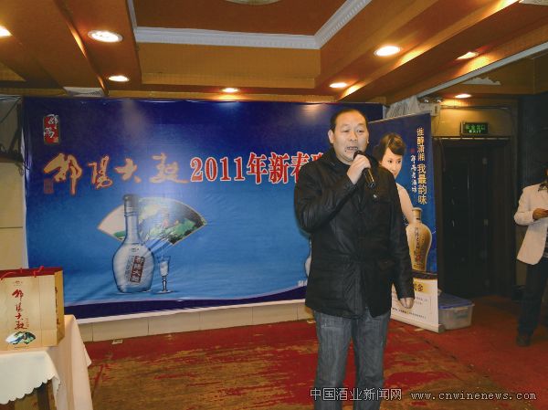 1月17日,华泽集团湘窖酒业有限公司在湖南邵阳县兴隆酒家召开邵阳大曲2011年新春联谊会,酒类经销商在会上进行了抽奖活动。图为华泽集团湘窖酒业有限公司副总经理杨代平在会上