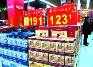 农历新年的脚步越来越近了,有关高档白酒涨价的消息也不绝于耳,尤以茅台的“涨价”和“限价”最为抢眼。近日记者走访超市卖场时了解到,高端酒中只有茅台涨价幅度最高,而其他高端品牌如水井坊、国窖1573则与中低端酒如金六福、汾酒等品牌展开促销大战,促销模式以八五折、买两瓶减100元等形式为主。