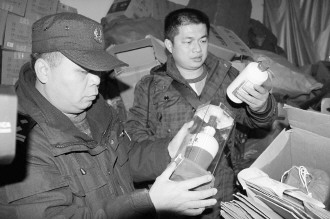 在公安部部署开展的打击侵犯知识产权和制售伪劣商品犯罪“亮剑”专项行动及“春季攻势”专项行动中,近日,广西壮族自治区柳州市警方破获一起特大制售假酒案,抓获两名嫌疑人,捣毁两个加工名牌假酒作坊,查获700余件假冒名酒,缴获500多箱加工制作假酒的商标、包装盒及两套造假工具,案值近千万元。