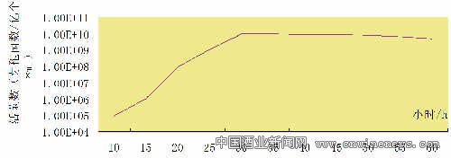 培养时间短,则菌体数量少,繁殖能力弱,活力及代谢能力降低,糖化力低,发酵力差。仰韶酒业采用的酵母培养时间一般在48小时左右,培养时间对酵母生长规律的影响见表1。
