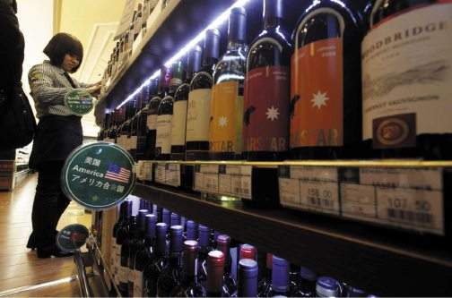 A Beijing supermarket displays wine imported from the U.S. / AP file |
