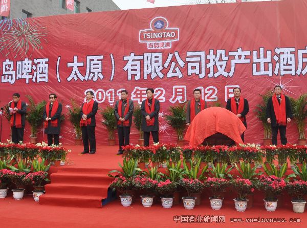 山西省委常委、太原市委书记陈川平,市委副书记、市长张兵生,青啤公司党委书记、副董事长王帆共同开启了青啤太原公司生产的第一桶啤酒。这标志着备受市民关注的青啤太原公司,在引进青啤国际化酿造技术与标准,进行系统改造后,正式投产,从此山西人民在家门口就能喝上优质、正宗、新鲜的青岛啤酒。仪式上,太原市委常委、副市长荣彤,青啤公司副总裁樊伟先后致辞。太原市、经济开发区及小店区有关部门的领导,青啤太原公司员工,施工单位及经销商、供应商、消费者代表近600人参加了庆典仪式。。