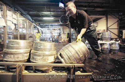 据英国《食品商》(Grocer)杂志报道,由于啤酒大麦价格不断上涨,加之消费税和附加税(VAT)的提高,文章来源华夏酒报今年英国市场每品脱啤酒价格可能将上涨约30便士。图为伦敦Fullers酿酒厂的工作人员在搬移啤酒桶。